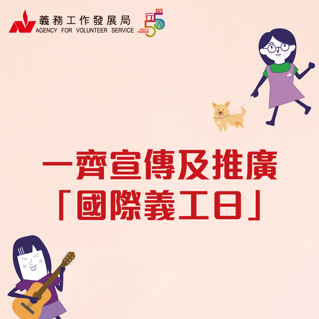 自1992年起,AVS亦会响应国际义工日,每年举办庆祝活动,向全港义工致谢,亦鼓励市民把义务工作融入生活。