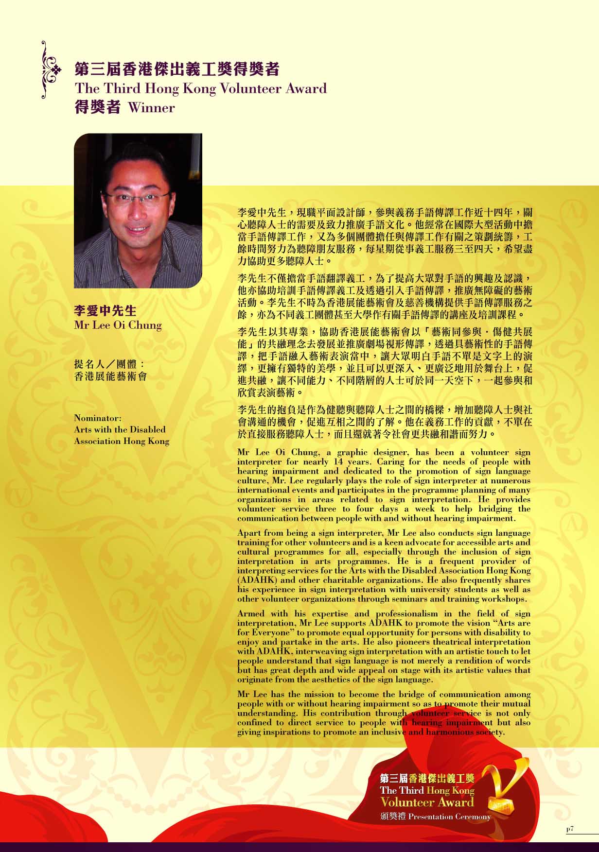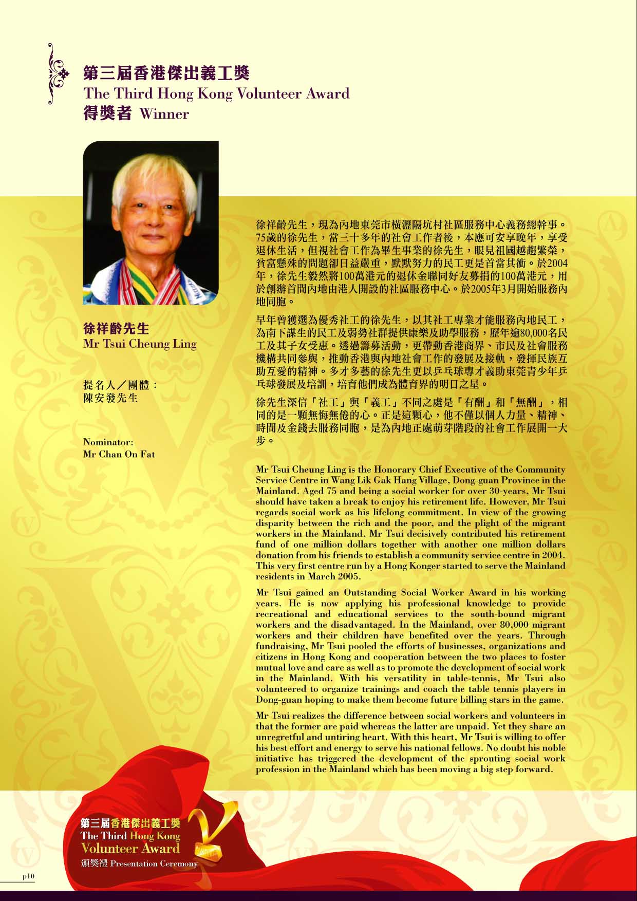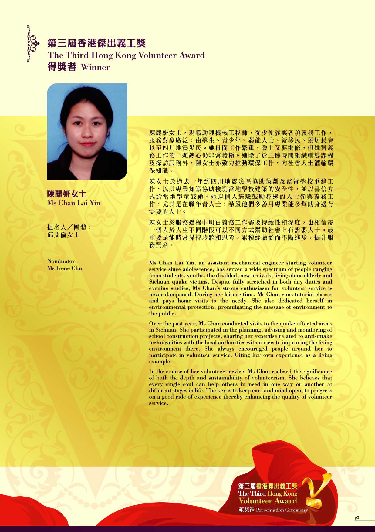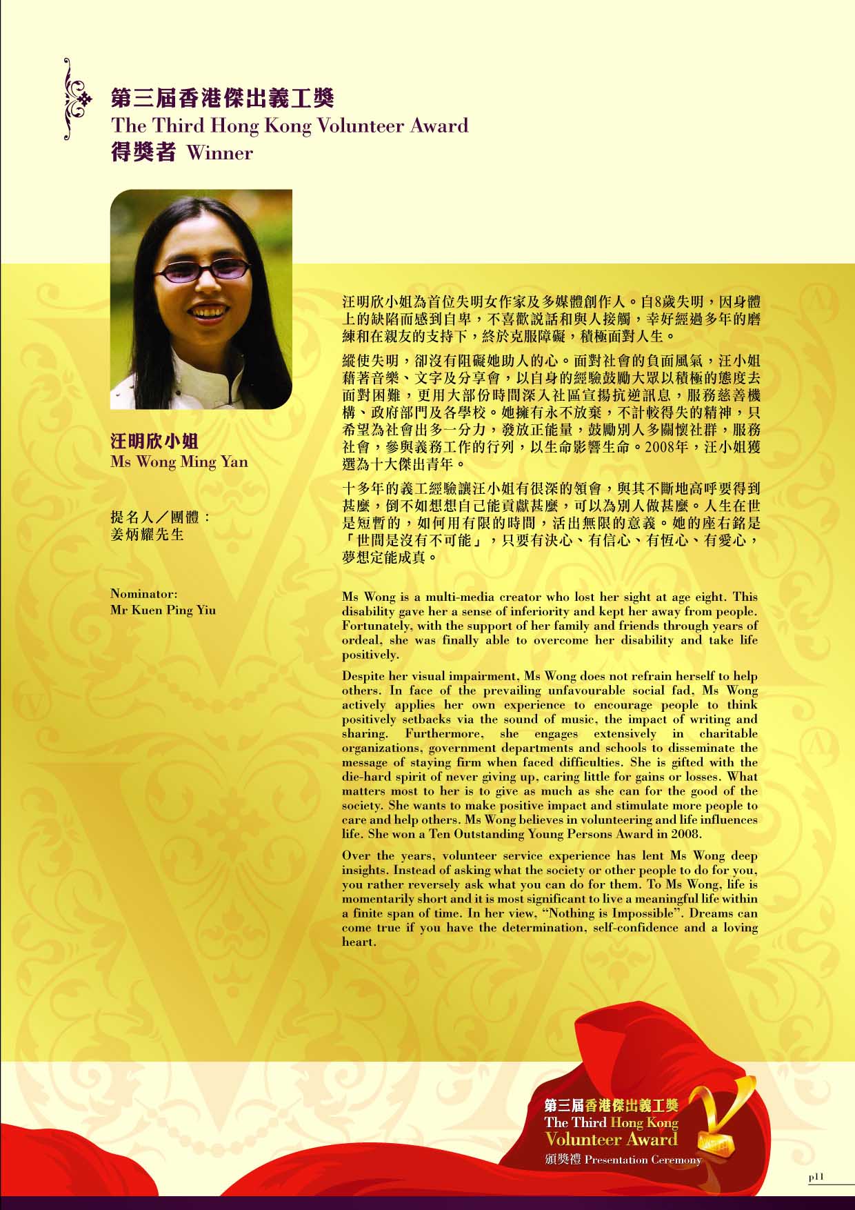 第三屆傑出義工獎得獎者簡介 Winners of The Third Hong Kong Volunteer Award