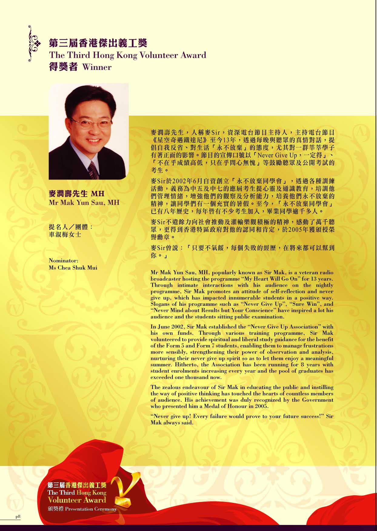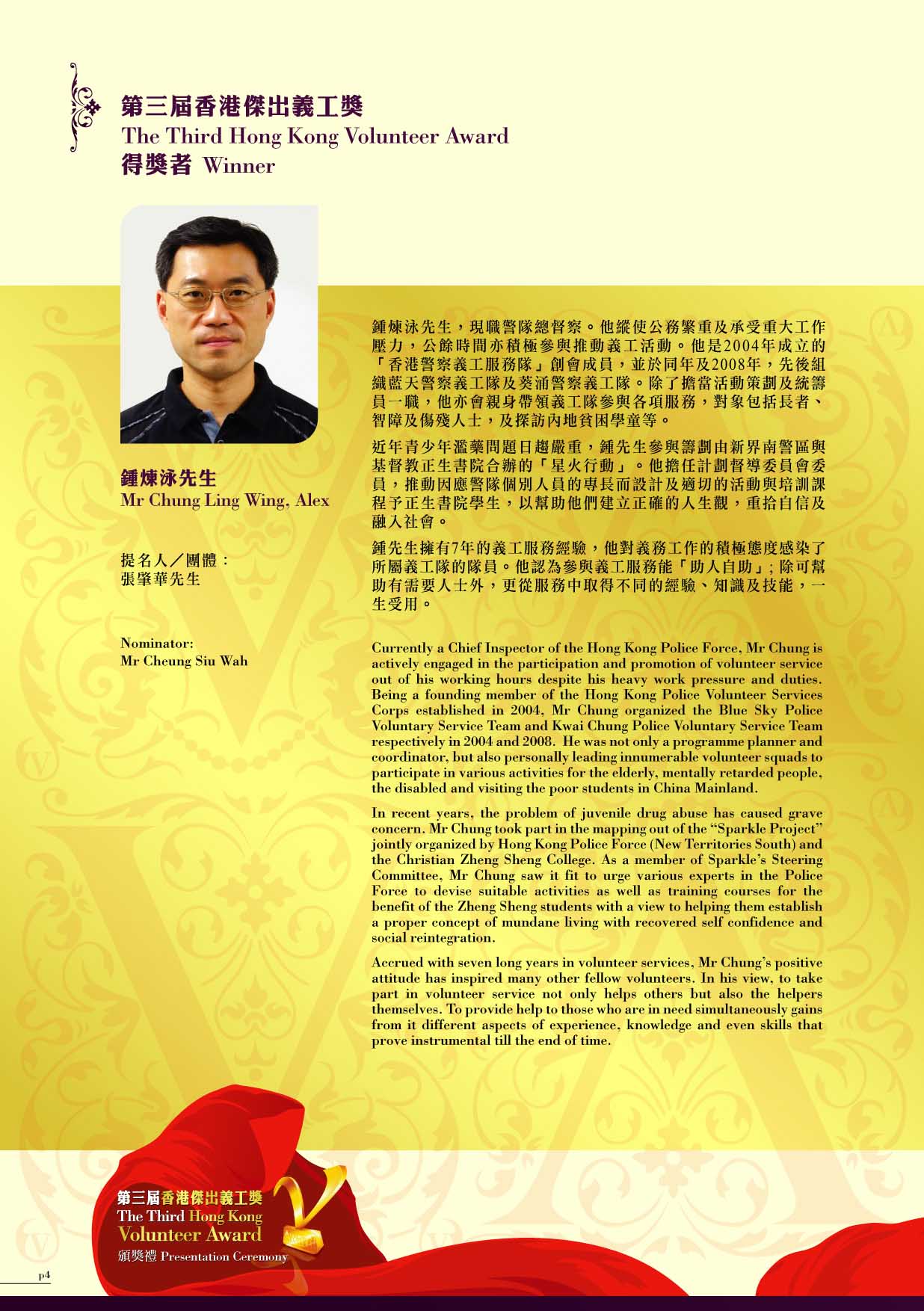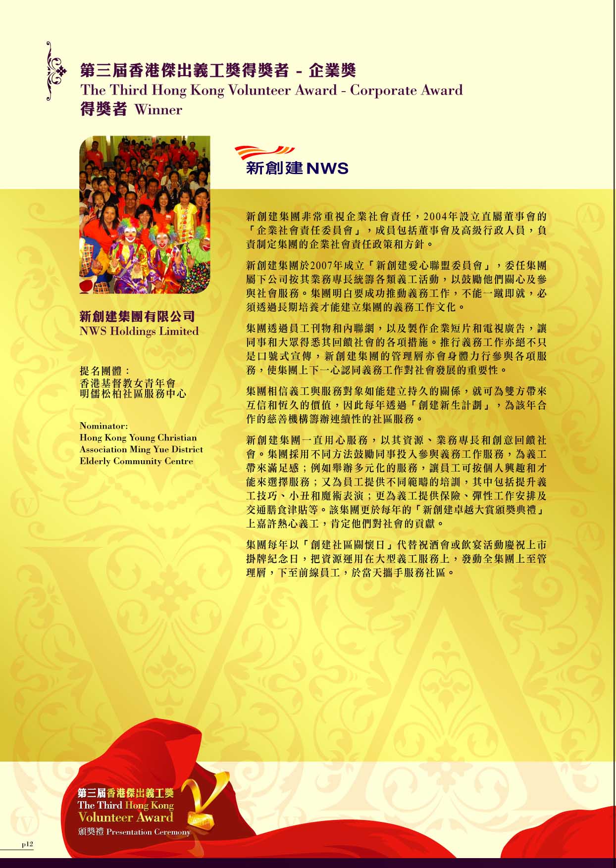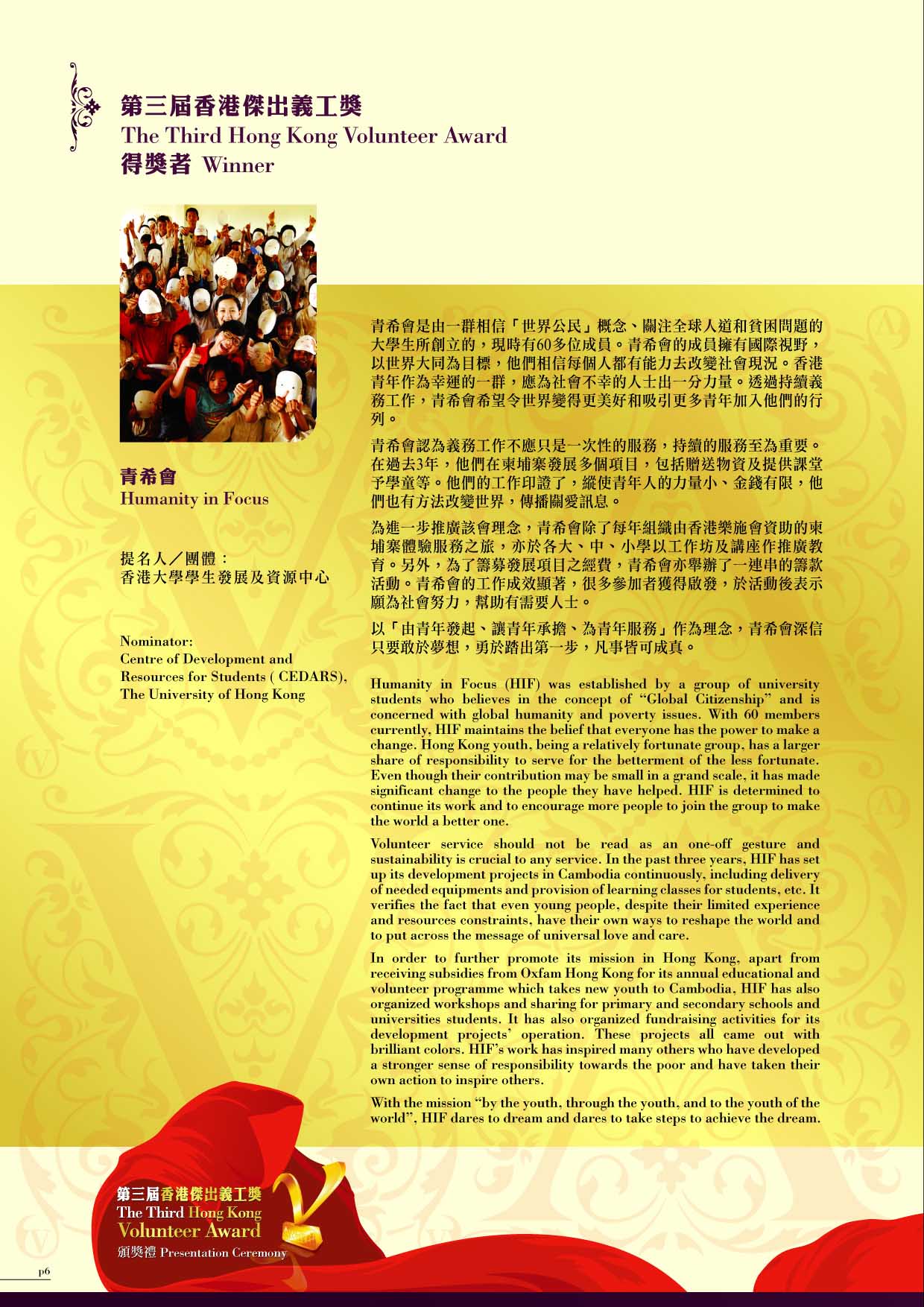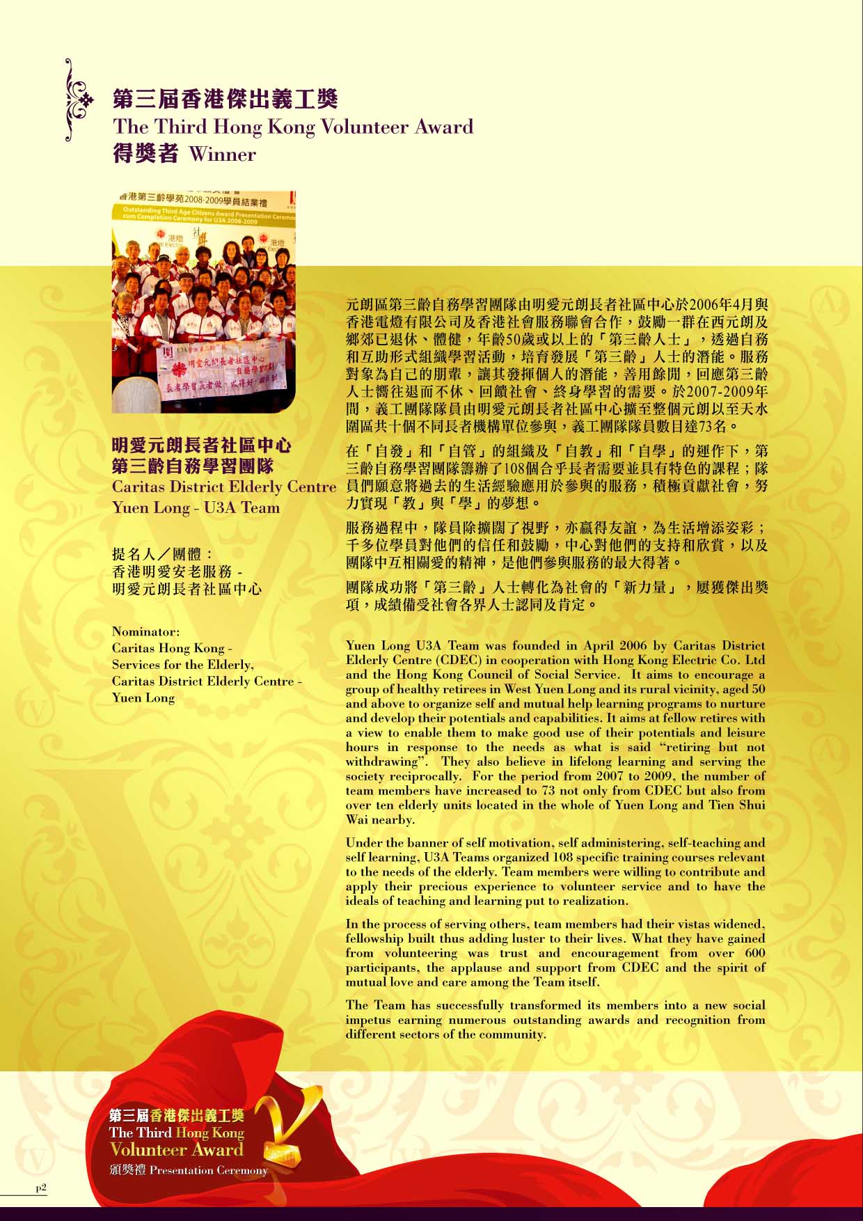 第三屆傑出義工獎得獎者簡介 Winners of The Third Hong Kong Volunteer Award