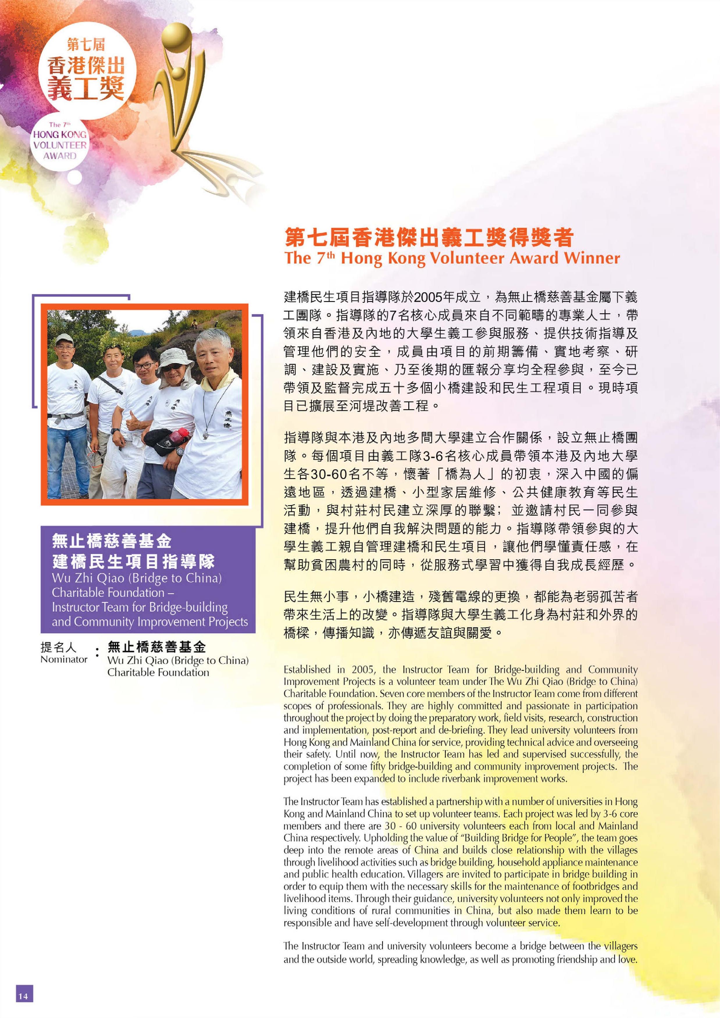 Wu Zhi Qiao (Bridge to China) Charitable Foundation - Instructor Team For Bridge-building and Community Improvement Projects